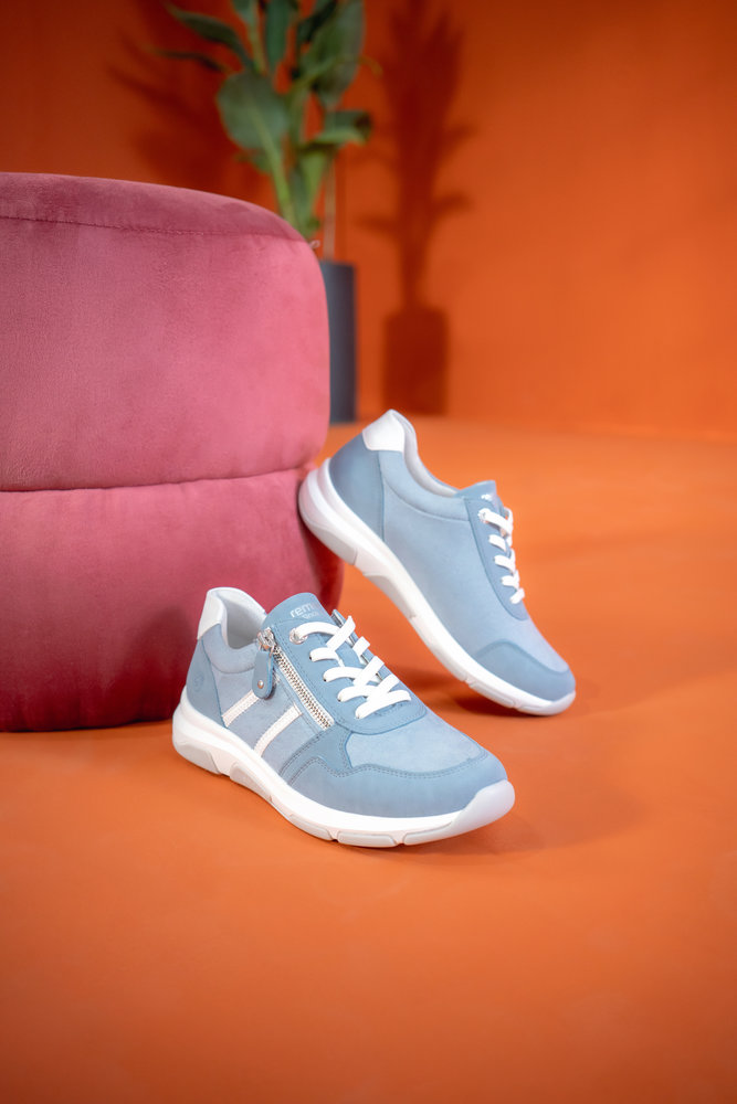 Einmal Sneaker, immer Sneaker! Mit dem Rieker B9302-14 in Blau bekommst du einen zuverlässigen Begleiter für jeden Tag. Sportlich, modern und herrlich bequem – genau so, wie du es brauchst. Dank Schnürung plus Reißverschluss sitzt der Schuh sicher am Fuß und ist trotzdem schnell angezogen. Die federleichte, flexible Sohle macht jeden Schritt angenehm – selbst wenn du lange unterwegs bist. Besonders komfortabel: die MemoCup-Innensohle, die sich deinem Fuß anpasst und für ein entspanntes Laufgefühl sorgt. Durch die Extraweite genießen deine Füße mehr Bewegungsfreiheit im Vorfußbereich. Ob im Alltag, auf Reisen oder beim Stadtbummel – dieser Sneaker macht alles mit. Look-Tipp: Lässig mit Denim und Shirt oder sportlich kombiniert mit Chino und Hoodie.