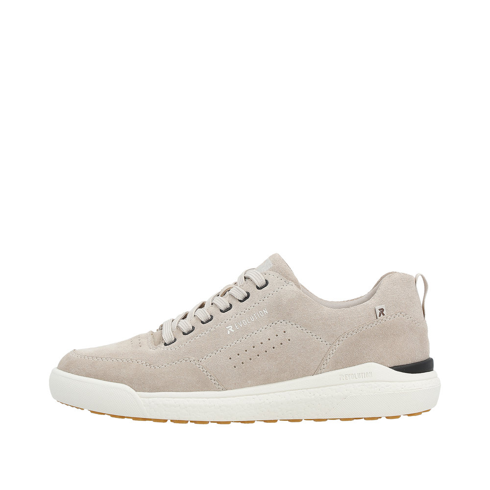 Diese beigen Rieker Sneaker B1000-60 für Herren aus hochwertigem Rauleder und Textil vereinen lässigen Stil und hohen Tragekomfort. Die praktische Schnürung sorgt dafür, dass der Schuh optimal sitzt und sich individuell anpassen lässt. Die leichte, schockabsorbierende Sohle bietet bei jedem Schritt eine angenehme Dämpfung und verwöhnt die Füße. Die gepolsterte, herausnehmbare Einlegesohle sorgt für zusätzlichen Komfort und ist ideal für den täglichen Gebrauch. Dank der Komfortweite G - G½ genießt Du mehr Freiraum im Schuh. Das markante Rieker Air Fenster im hinteren Bereich der Sohle setzt nicht nur einen optischen Akzent, sondern trägt auch zur Dämpfung bei. Ein Schuh, der sowohl im Alltag als auch in der Freizeit überzeugt – perfekt für alle, die Wert auf Stil und Bequemlichkeit legen.