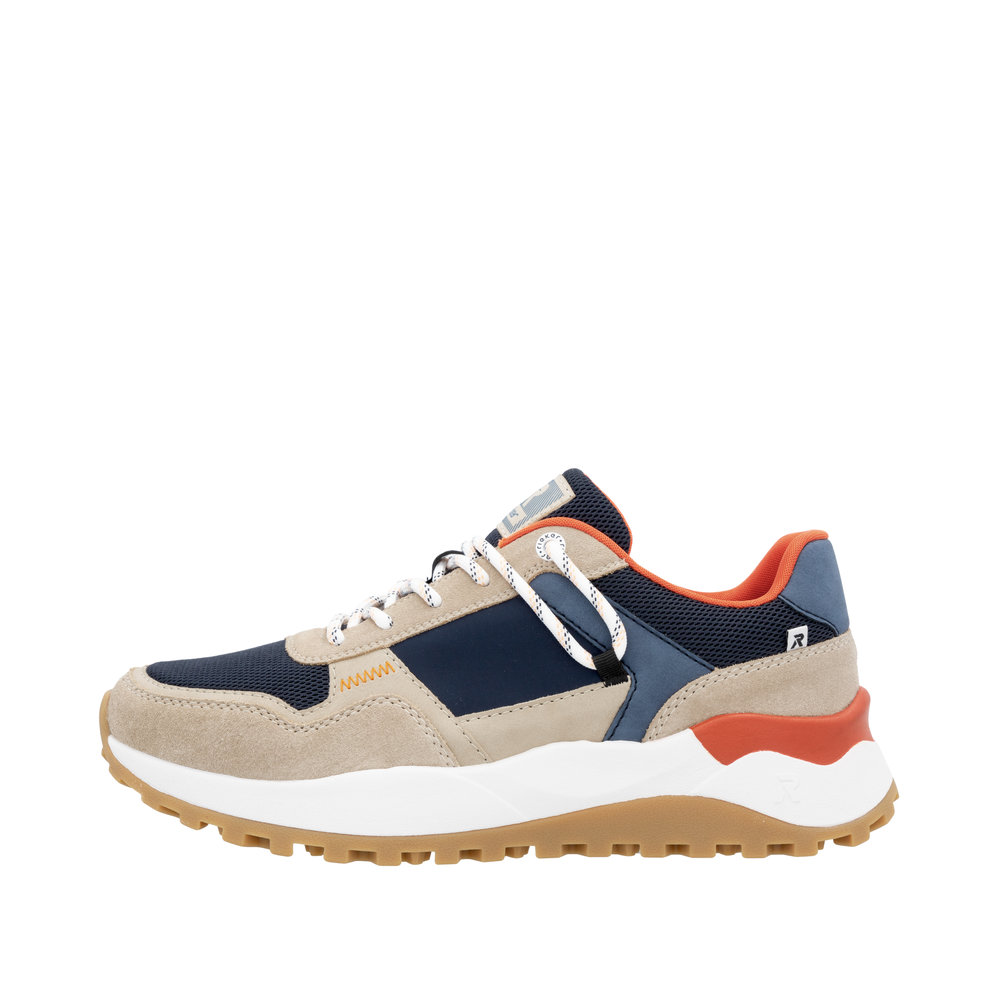 Entdecke die sportlichen Sneaker 16901-14 von RIEKER – ein absolutes Must-Have für modebewusste Männer!Diese blauen Sneaker vereinen stilvolles Design mit höchstem Tragekomfort, sodass Du immer gut angezogen und bequem unterwegs bist. Dank des praktischen Reißverschlusses und der Schnürung kannst Du die Schuhe individuell anpassen, um einen perfekten Sitz am Fuß zu gewährleisten. Der Reißverschluss ermöglicht zudem einen kinderleichten Einstieg. Die leichte, schockabsorbierende EVA-Sohle mit Gummi-Lauffläche sorgt für ein angenehmes Gehgefühl, selbst an langen Tagen. Das Obermaterial aus atmungsaktivem Meshgewebe und Lederimitat passt sich optimal an den Fuß an und fördert die Luftzirkulation. Mit der Komfortweite H und der weichen, herausnehmbaren Einlage bietet dieser Schuh außergewöhnlichen Tragekomfort. Der perfekte Mix aus Komfort und sportlichem Design in Dunkelblau, ergänzt durch stilvolle Akzente in Braun, macht diese Sneaker von RIEKER zur idealen Wahl für jeden Anlass.
