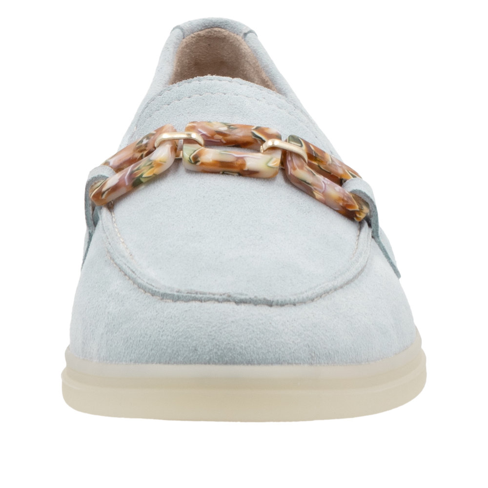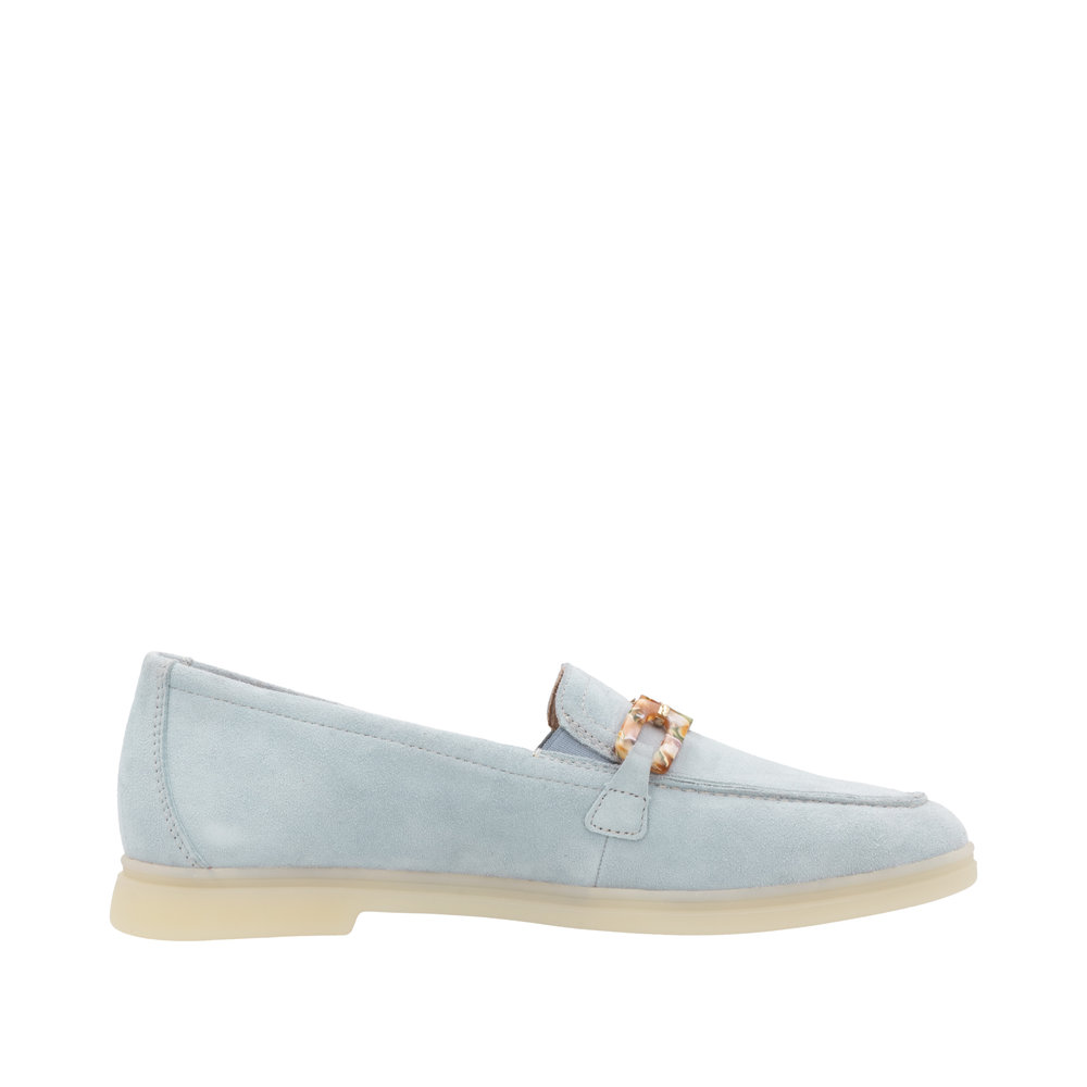 Diese Loafer in schönem Hellblau vereinen stilvolles Design mit tollem Komfort. Die bunte Schnalle sorgt dabei für das gewisse Etwas.