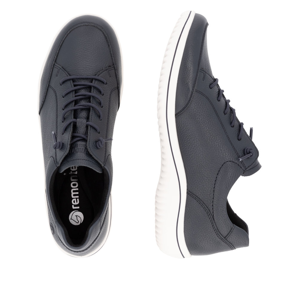 Modisch und komfortabel: Die blauen Sneaker D1E07-14 von REMONTE aus feinstem Glattleder kombinieren trendigen Stil mit praktischer Funktionalität.