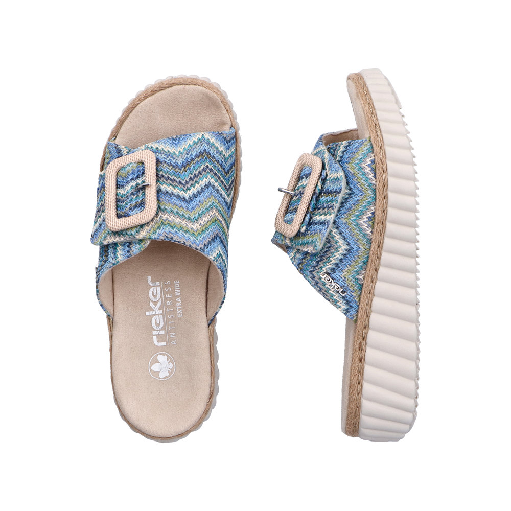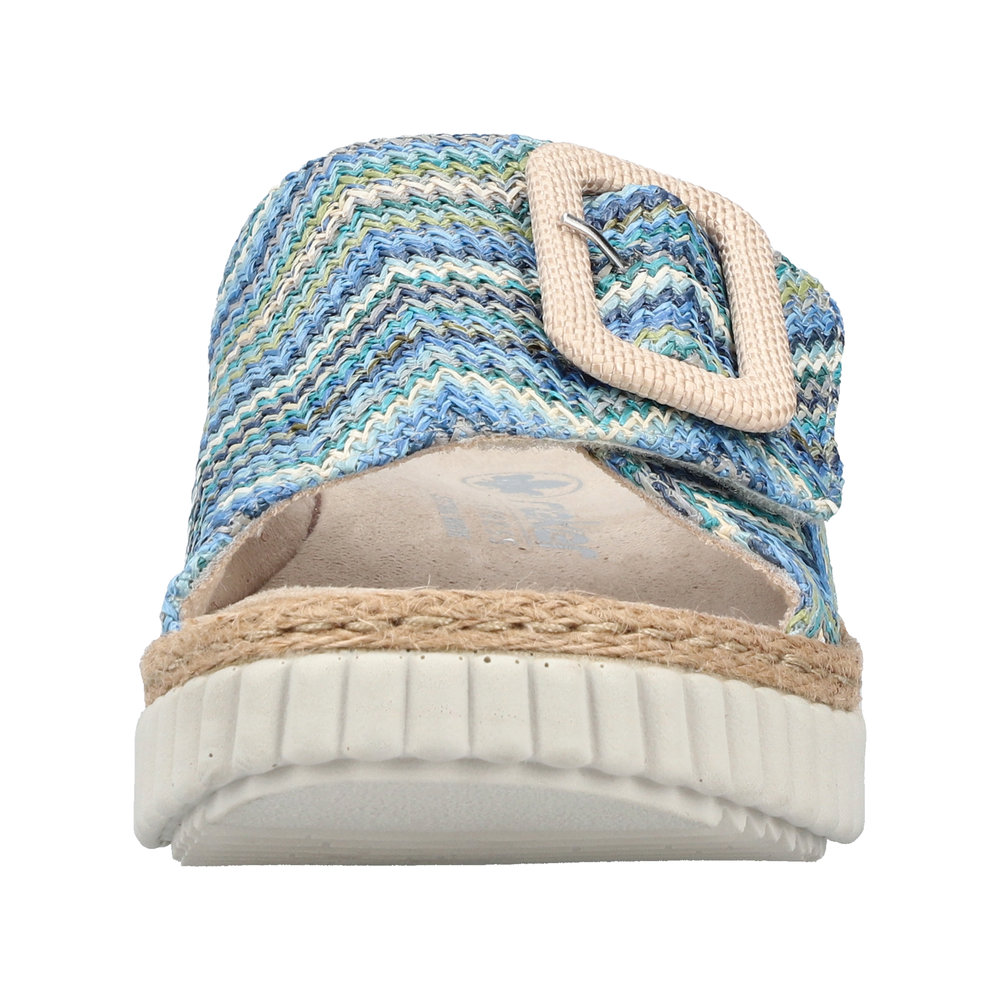 Die Rieker Pantolette 69253-90 in Blau ist der ideale Schuh für die warmen Tage und wird schnell zu Deinem neuen Lieblingsbegleiter. Mit ihrem fröhlichen, mehrfarbigen Design bringt sie frischen Schwung in Deine Sommergarderobe.