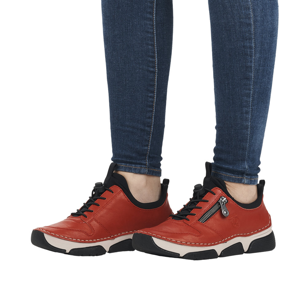 Dieser sportliche Slipper von Rieker in auffallendem Rot ist ein Hingucker und dabei noch super bequem.