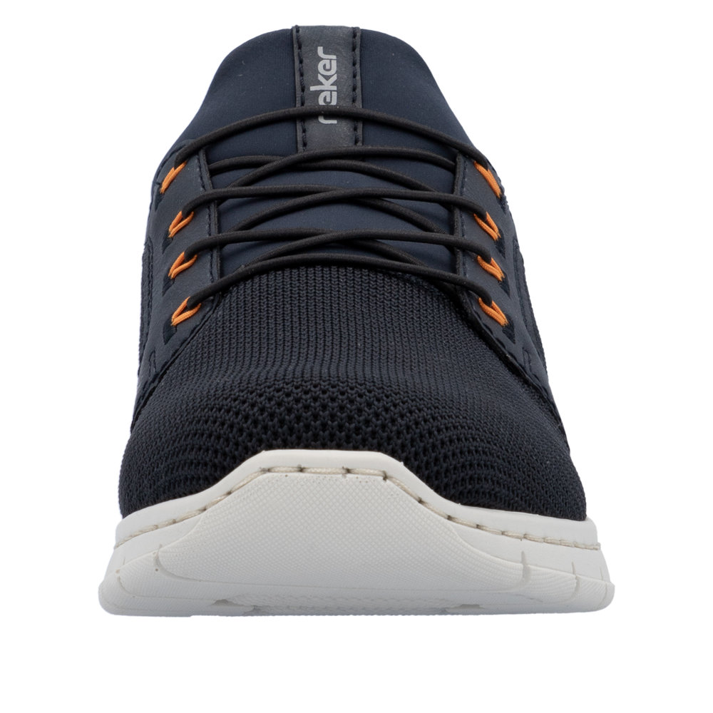 Komfort und sportlicher Stil in Dunkelblau mit Akzenten in Orange und Braun - ein Top Modell von RIEKER
