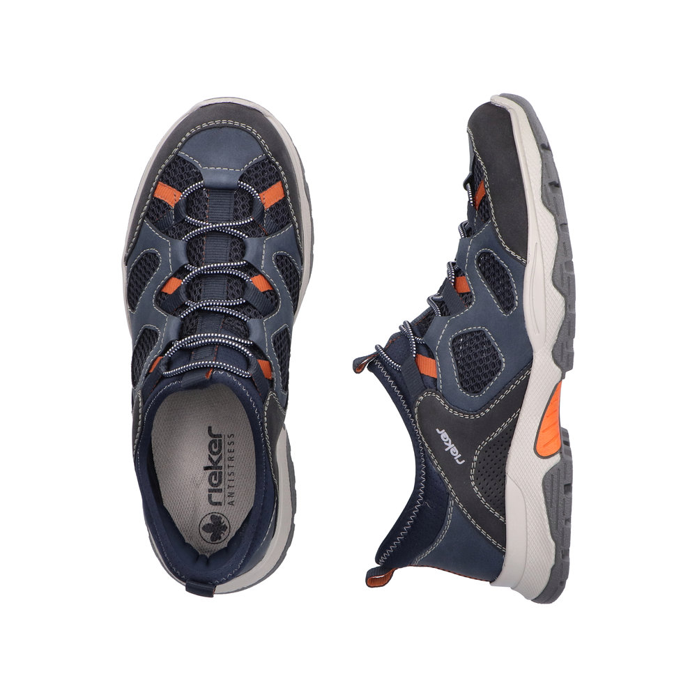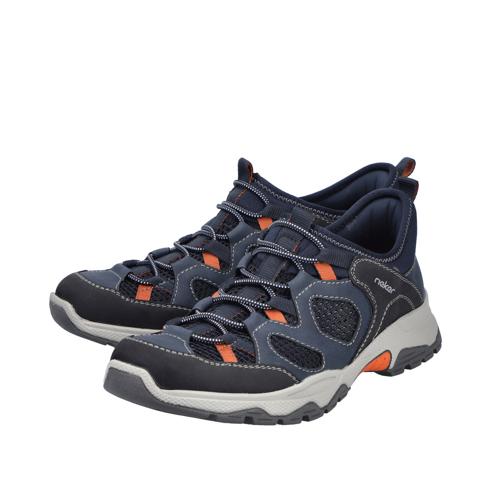 Ein toller Sportschuh zum Radfahren, Walken oder einfach für jeden Tag in Dunkelblau mit Akzenten in Orange - ein Top Modell von RIEKER