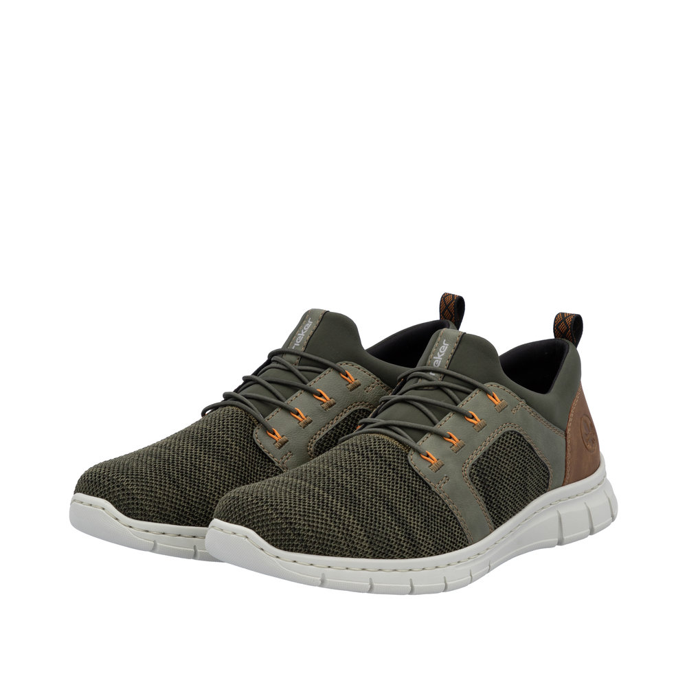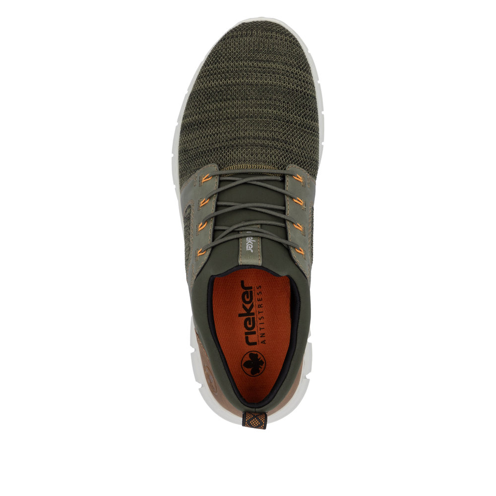 Komfort und sportlicher Stil in Olivgrün mit Akzenten in Orange und Braun - ein Top Modell von RIEKER für die warme Jahreszeit